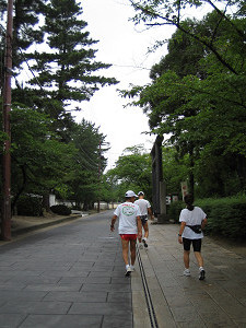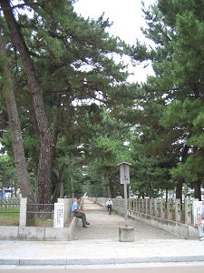 藤ノ木古墳を見学して再び法隆寺の前に戻ってきます。今度は正門から松並木の間を走ってみましょう。