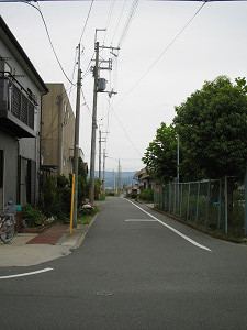 国道25号線に出ます。そのまま信号を渡って、次の角を左折します。(給水はこの辺りで。)