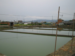 この辺りは金魚の養殖で有名な地域。至る所に金魚の養殖池が見られます。