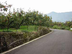 まっすぐ行って県道30号線をまたぎます。 秋に行くと、またいだ辺りに柿を売る無人販売のスタンドがありました。 3個100円!「甘~い、甘~い」と書いてあったのと書いてなかったのとがありました。 以前「甘いよ」と言われて渋柿を買わされたことがあったので不審を抱きながらも、 とりあえず「甘い」と書いてあるのを買いました。食べてみると…「甘~いっ(^^)」。 元気百倍です。