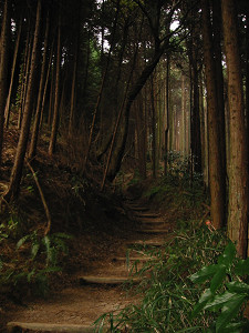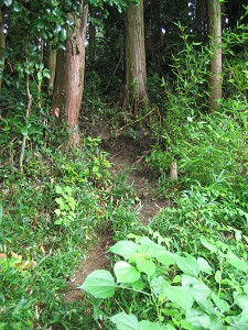 林の中の怪しげなけもの道を上ります。3回目にしてようやくたどり着けました(^^;。
