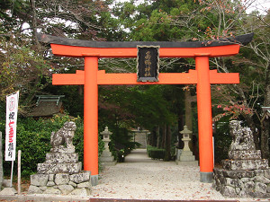 橋本院を出て、山裾の細い道を進むと、ひっそりと、本当にひっそりと鳥居が見えてくる。 写真を撮るのが怖くなるくらい、何かありそうな雰囲気だ。神様が降臨したとしてもおかしくない?!
