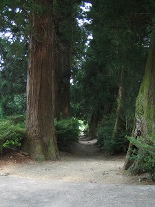 参道の両脇には樹齢数百年といわれる杉木立が立ち並ぶ。