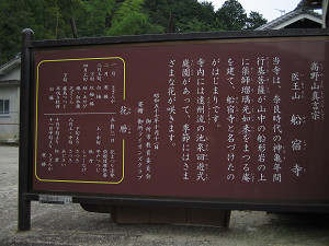 しばらく行って、右側の細い道を上ると船宿寺の看板が見える。