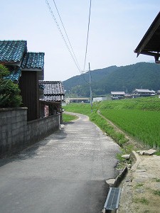 県道30号線を途中で左に曲がり、細い道を国道24号線に向けて下る。