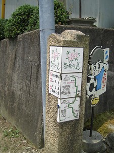 葛城古道にはこのような道標が整備されているので迷うことはない。 だが、サッカー少年が飛び出してくることがあるので?注意しよう。