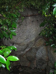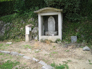 すっかり風化してよくよく眼を凝らさないと見えませんが『六地蔵』です。 道の途中に、何気なく突然現れるので「えっ!」という感じですが…。 裏からやってくるので余計わかりにくい…。