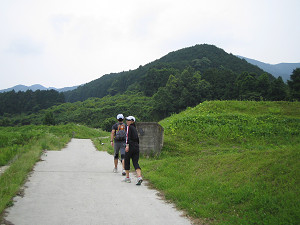 両岸とも道路が整備されていて走りやすい。暑い季節は木陰のできる南側の道がよいでしょう。