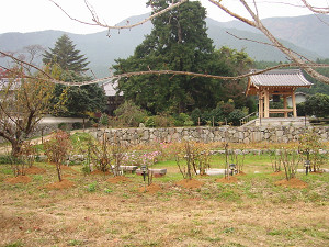深い森を抜けて突然景色が開けてくる。そこはもう橋本院の敷地内。