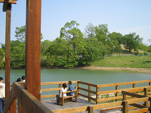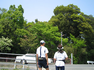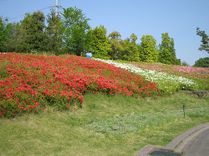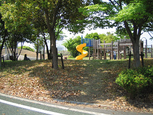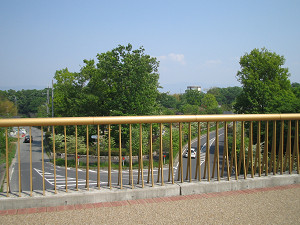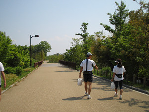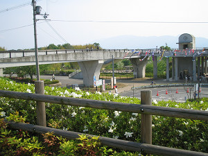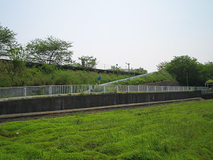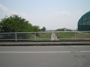 こちらも県道14号線を越える歩道橋上。これを渡ると「北エリア」の大芝生広場です。 広場で昼食をとりましょう。(但し、公園内にはゴミ箱がないのでゴミは持ち帰りましょう(^^)。)