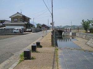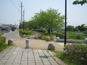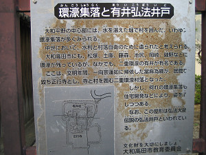 さくら荘へ向かう途中、有井という集落の盤園小学校の前あたりに井戸の跡があります。 この辺り一帯も環濠集落だったそうです。