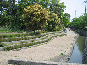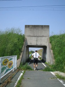 再び葛城川沿いの自転車道を北上します。