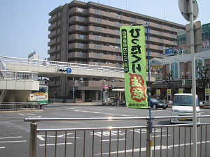 県道14号線を南側へ渡る歩道橋から。