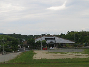 まだ新しい施設のようですね。南側ではまだ何か建設中でした。 この辺りから西の方(左手)に竹取公園~馬見丘陵公園の長い丘が見え始めます。