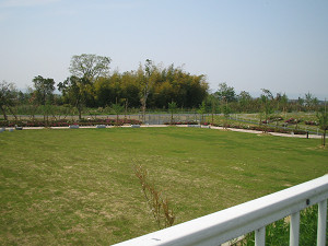 第二浄化センターの浄化槽の上は広いグラウンドと公園になっています。この中を走りましょう。