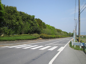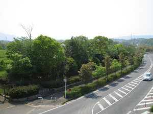 県道14号線を越える。向かいに見えるのは「櫛玉比女命(くしたまひめのみこと)神社」。 左手には馬見丘陵公園が望める。