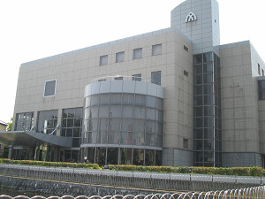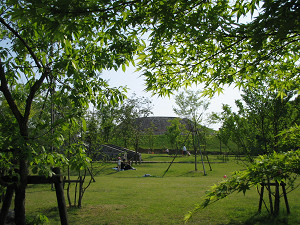 古墳側から町立図書館を見たところ。