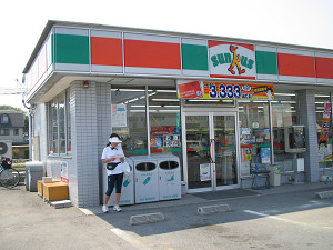 高田川を西側へ渡ってそのまま西へ少し行くと県道5号線と交わる「沢交差点」のところにサンクスがあります。 ここで昼食を買って馬見丘陵公園に向かいます。
