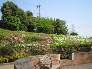 公園内にはさまざまな花が植えられている。