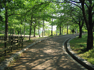 公園内の道はきれいに整備されている。この辺りは「なごみの道」という遊歩道。