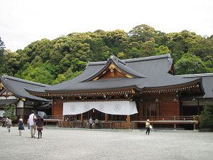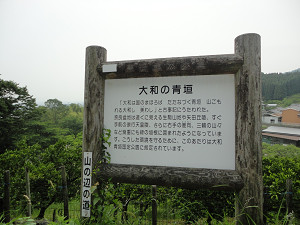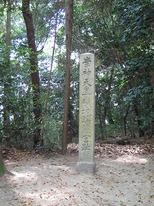 卑弥呼の墓ではないかと騒がれたこともあるが、公式発表では「倭(やまと)迹迹日(ととひ)百襲(ももそ)姫大市」の墓とされている。ここからほぼ真東に歩くと檜原神社。