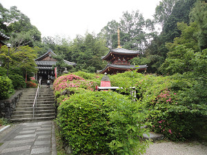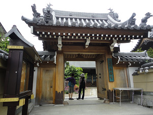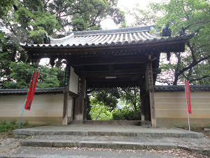 長岳寺の山門前を右へ行くとトレイルセンター。
