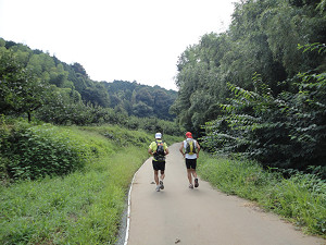 公園内のトイレで簡単に着替えをして広場で準備体操。 今回は荷物を持って走ります。いよいよマラニックの始まりです。